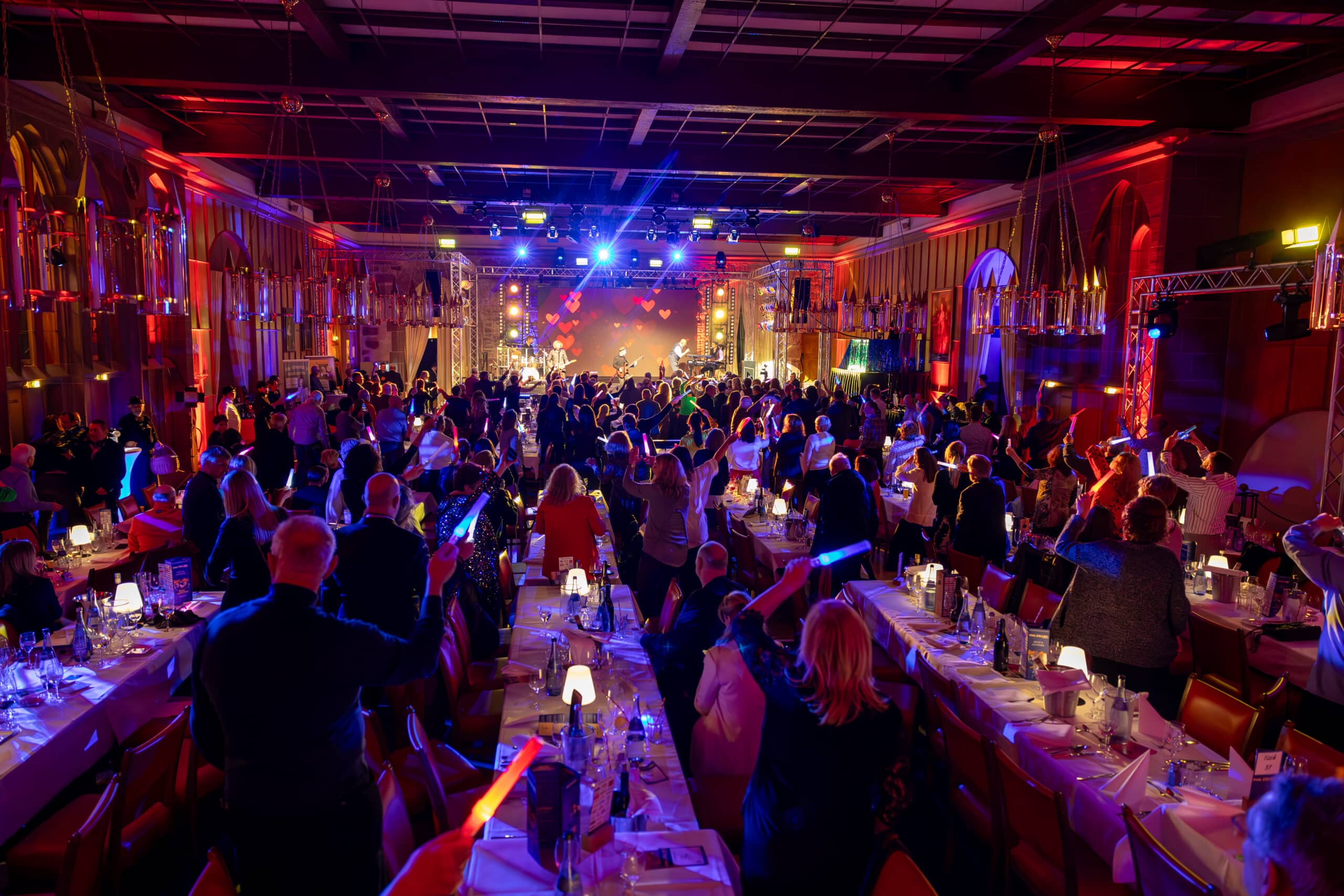 Der Königssaal ist in beiden Kategorien mit 6er- und 12er-Tischen bestuhlt. Jeder Gast hat optimale Sicht auf die Bühne und Show. Auch von Parkett 2 aus, im hinteren Bereich des Königssaals, genießen Sie von unserer Empore einen optimalen Blick auf die Bühne. Gruppenbuchungen werden gemeinsam platziert, je nach Gruppengröße an nebeneinander liegenden Tischen. Bei uns werden Sie sorgfältig von unserem Gästemanagement platziert, bei Fragen sind wir gerne für Sie da.